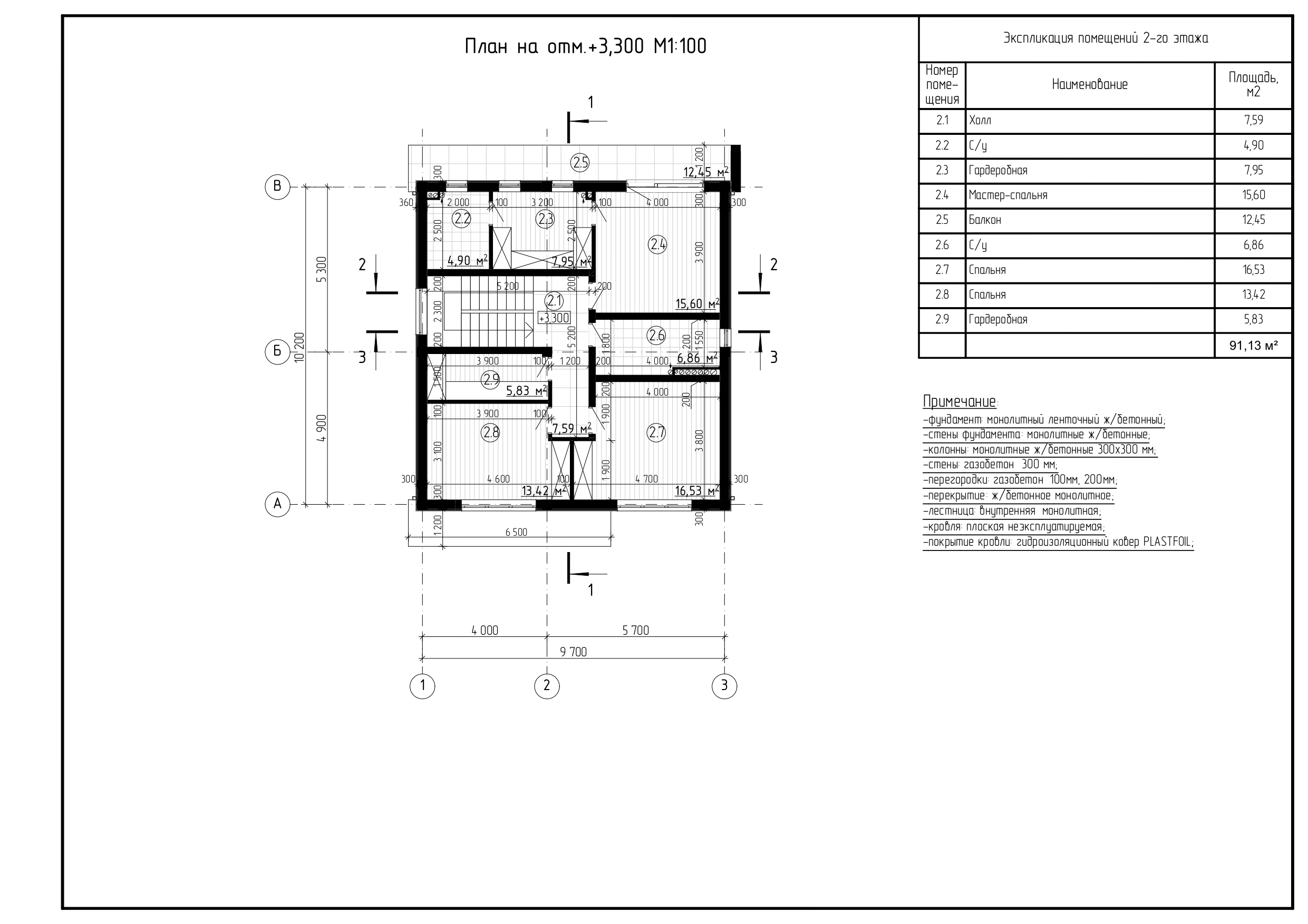 Стены: газобетон 300мм