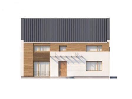 Проект представляет энергоэффективный дом оригинального дизайна с просторной гостиной.