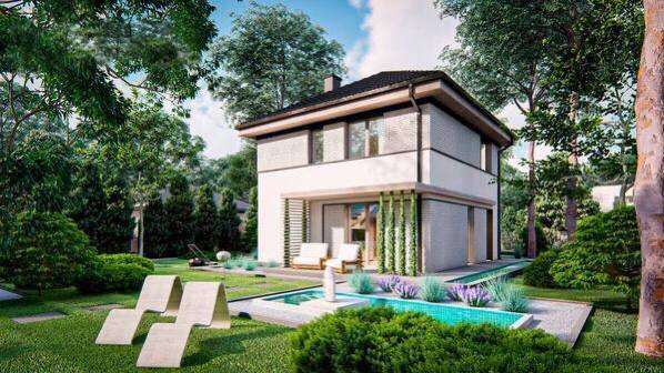 Проект представляет собой функциональный двухэтажный дом в современном стиле.