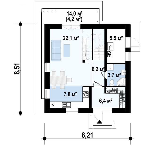 Гостиная: 22,1 m²