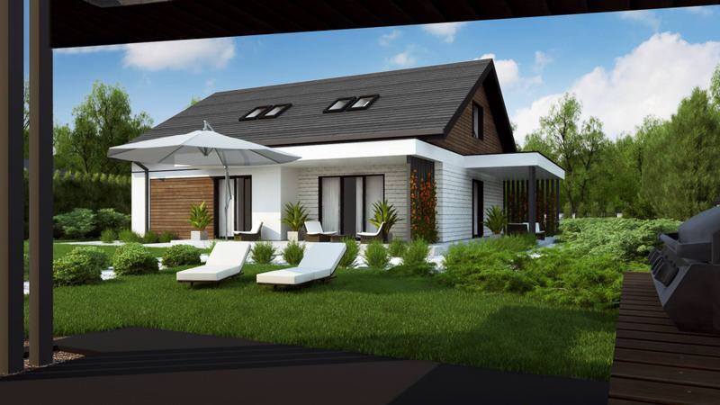 Современная отделка с классическим сочетанием цветов тонко подчеркивает традиционную простую форму дома. Этот проект придется по духу и молодому поколению и представителям семейства старшего возраста.