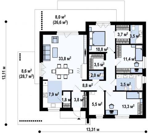 Комфортный просторный дом с одноуровневой планировкой