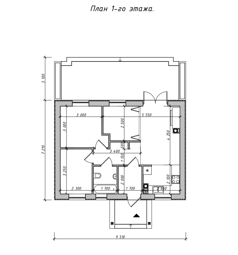 Размеры фасада: 9,51 m