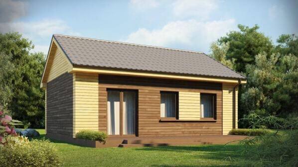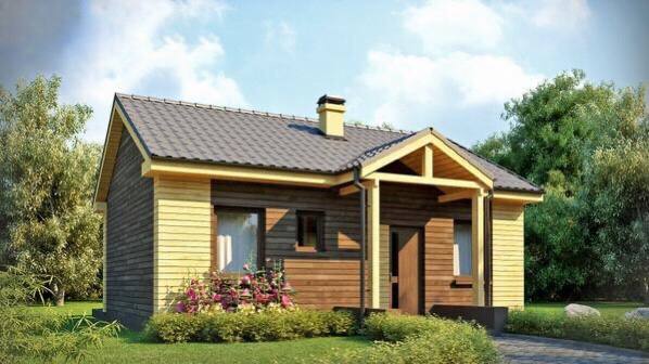 Маленький одноэтажный дом с двускатной кровлей