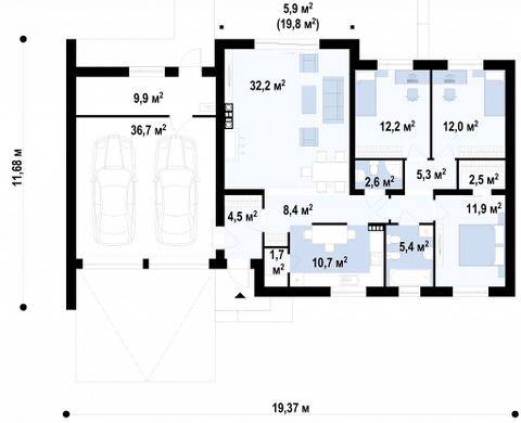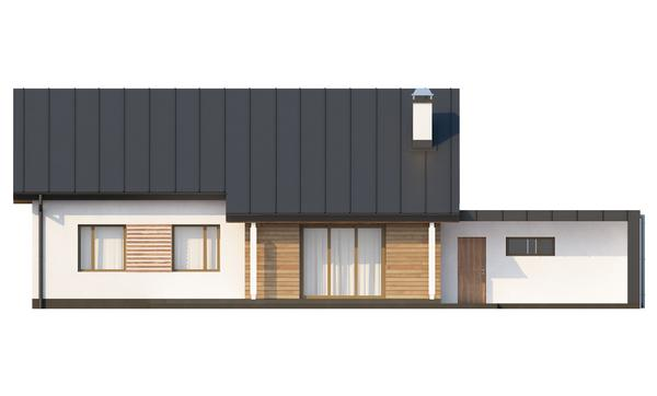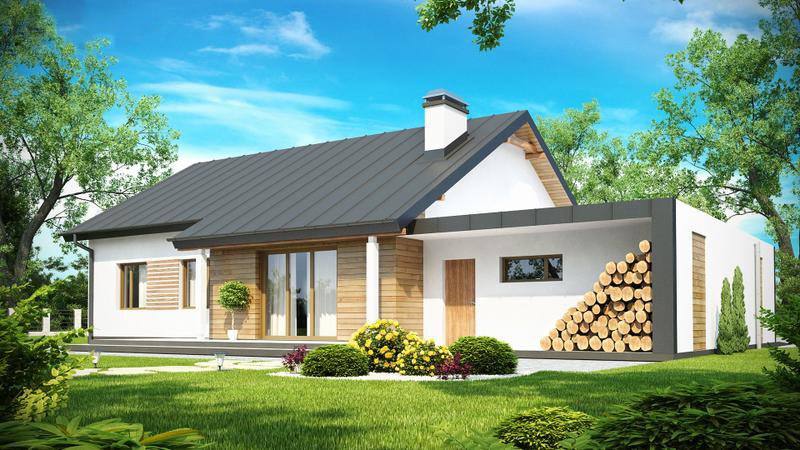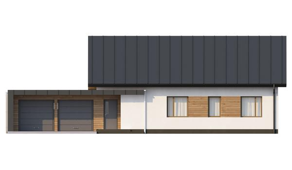 Практичный одноэтажный дом с двускатной крышей, с большим боковым гаражом
