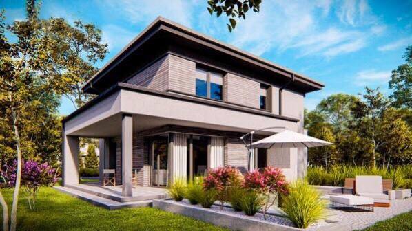 Дом, сочетающий традиционные формы и современный дизайн. За основу взята простая кубическая форма, экстерьер решён в современном стиле, что позволяет использовать проект как для городских, так и для загородных участков.