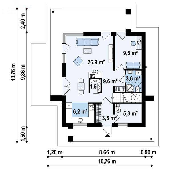Размеры фасада: 10,76 m